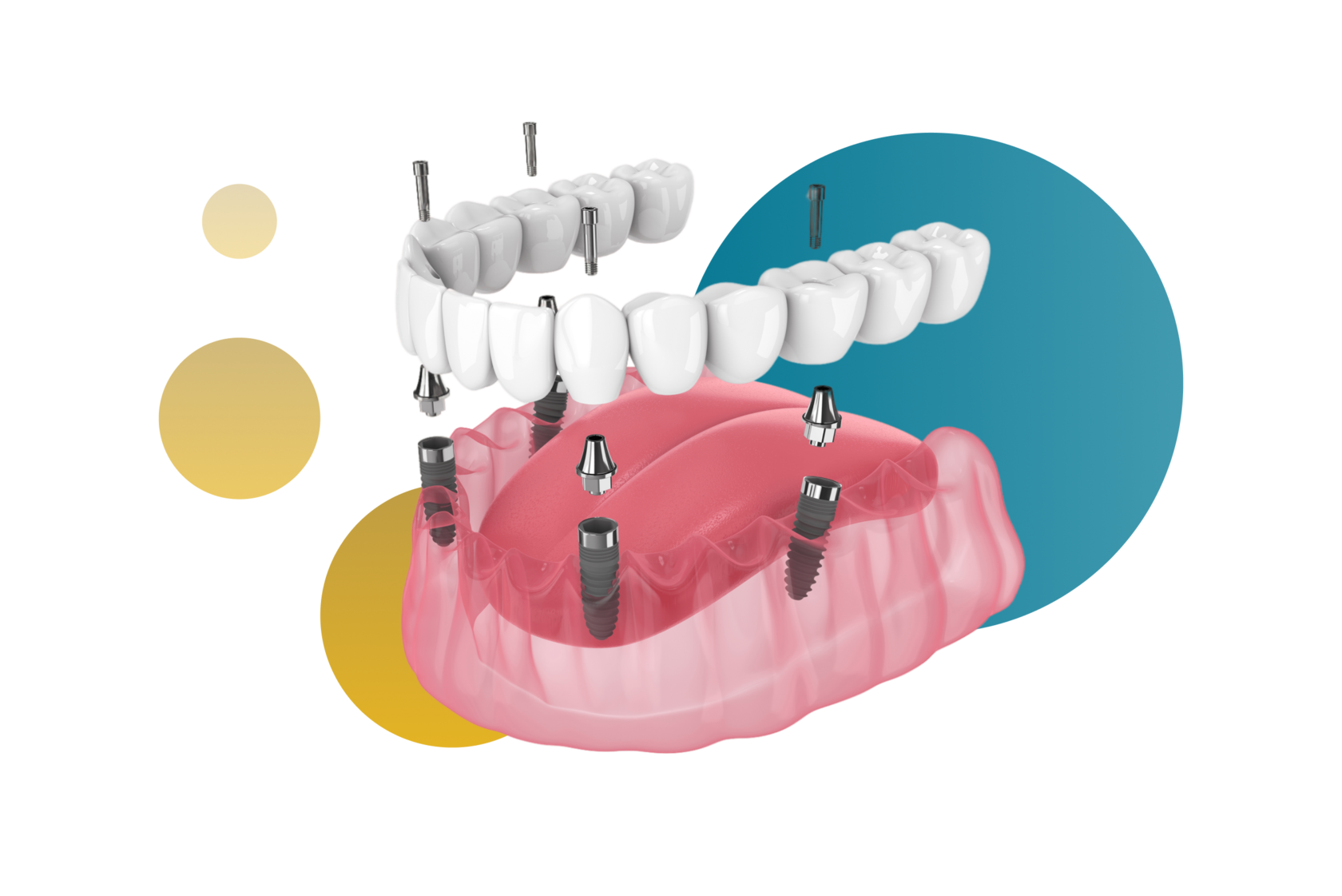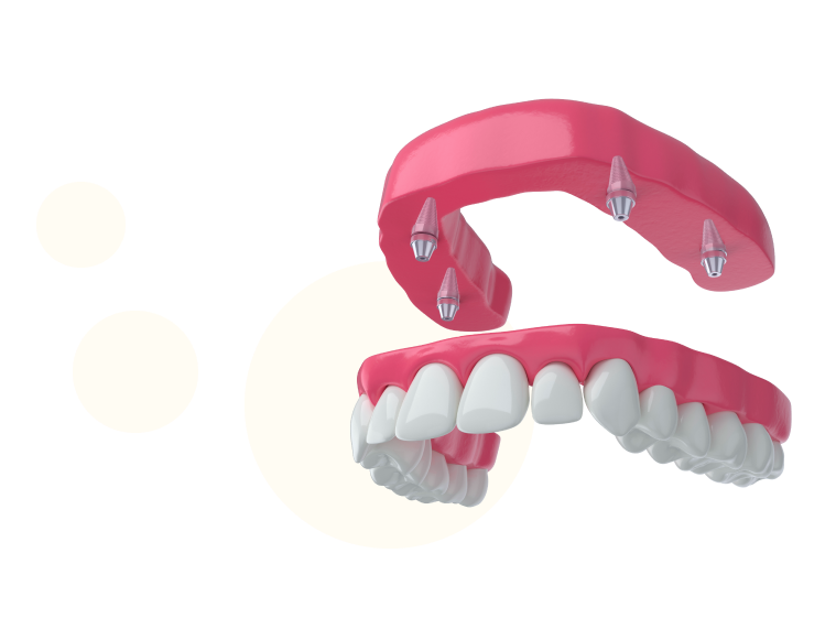 всего 4 опоры на верхнюю или нижнюю челюсть, которые поддерживают полный ряд зубов